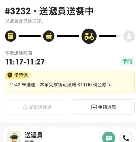 送餐过程中可以通过线上信息或者电话方式和送餐员沟通,与内地不太相同的是,香港的外卖员更倾向于线上信息沟通哦