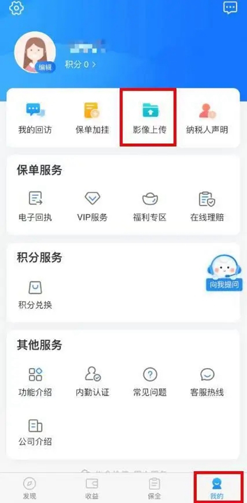 第1步:下载登录下载登录生命云服务APP,进入“我的-影像上传”,选择“新单投保证件上传”,进入证件上传功能界面。