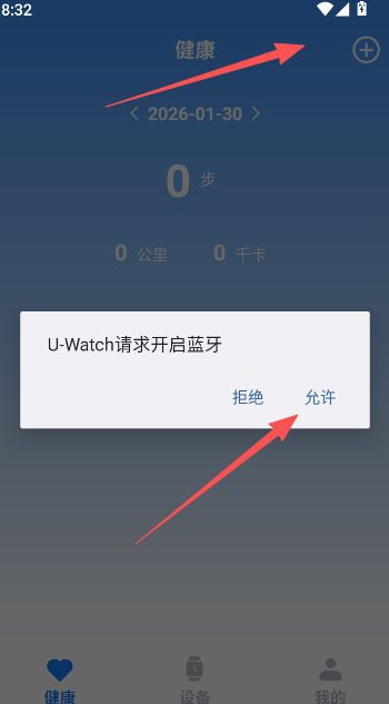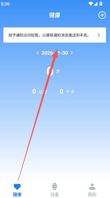 1、点击用户界面健康版块,根据上方提示授予相关权限部分。