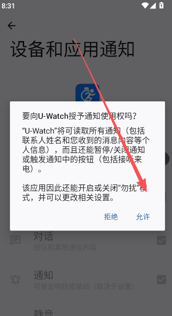 2、允许应用使用时发出通知,方便蓝牙连接的完成。