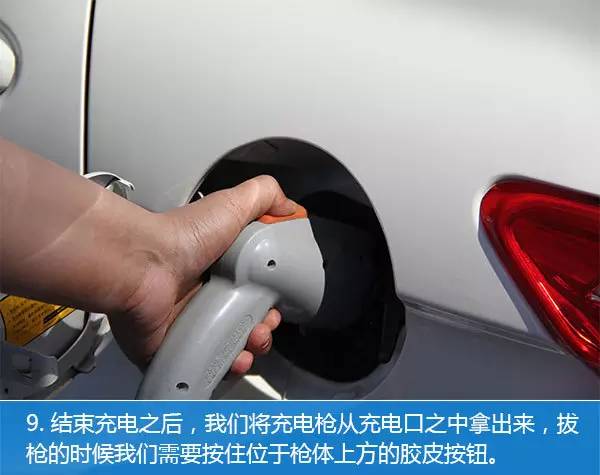 9、拔出充电枪时,需要按住位于枪体上方的胶皮按钮。