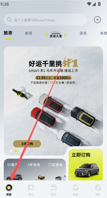 1、点击页面开始探索,选择你感兴趣的汽车话题参与其中,购车或是了解线下门店相关服务,均可在此进行。