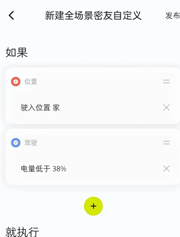 2、设置触发条件:车辆“驶入位置-家” + “电量低于38%”