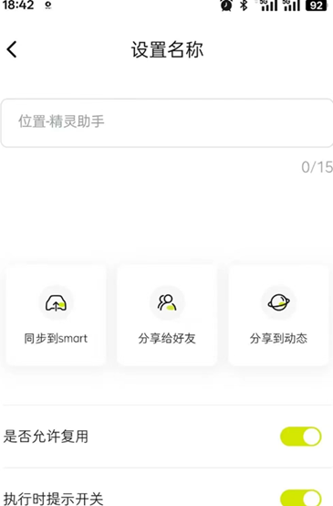 3、执行操作:让精灵助手播报自定义语音——“别忘了充电,么么哒”