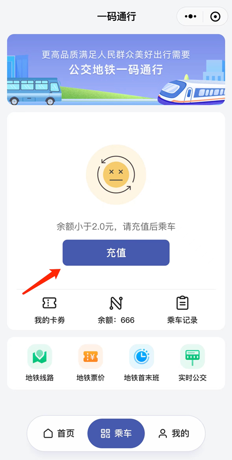 2、登录认证之后,返回首页再次点击“乘车码”;
