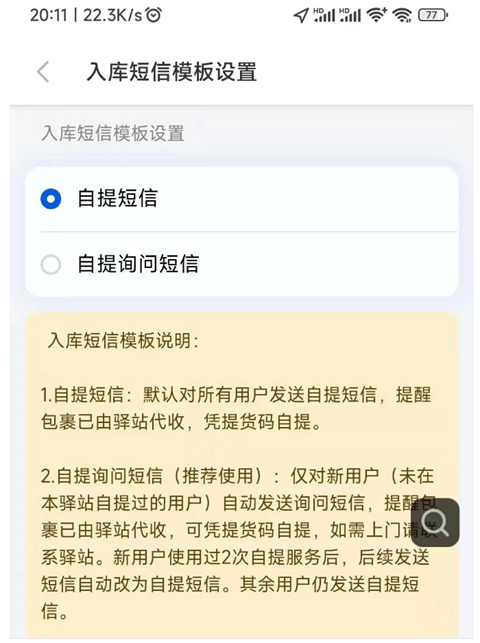 包裹入库前,需要在手机或者电脑端驿站掌柜后台,将操作设置的常规参数设置好,参照以下设置即可: