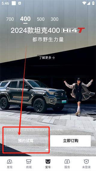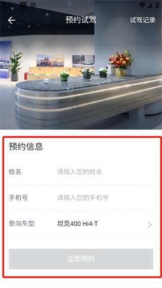 3、点开坦克,你会看到页面出现最新的车型的预约试驾还有附近的经销商的位置详情,选择线下门店前往试驾或是体验一些维修服务,也是很不错的。