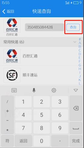 步骤二:点击商品派送所属的快递公司,在输入快递单号,点击:查询。