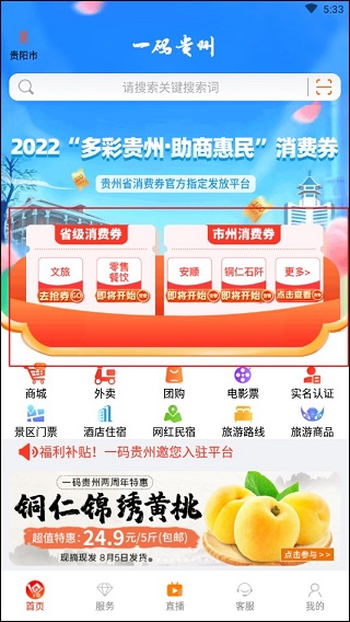 一码贵州app这是一款专门为贵州本地打造的服务平台,在这个平台上面也是带来了更加全面的服务,本地的朋友都是能够使用其获取到便捷的生活体验,一码贵州app也是会为大家发放消费券,用户都是能够自行在线上使用,想要了解更多的朋友现在就来下载吧!