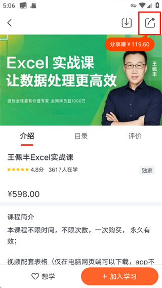 6、将课程分享给别人,别人通过你的分享链接购课即可赚钱。