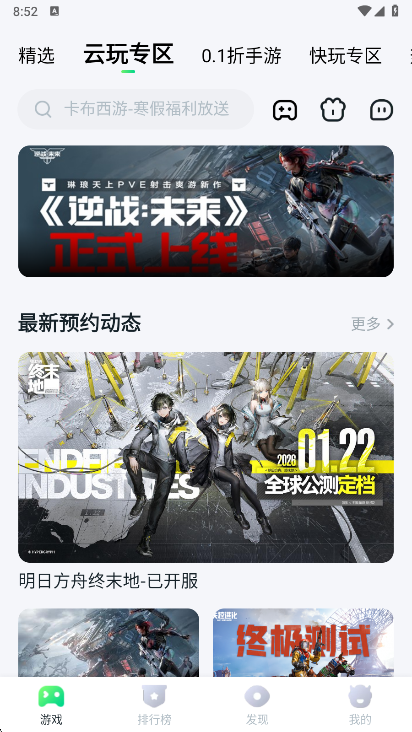 2、然后切换到云玩专区