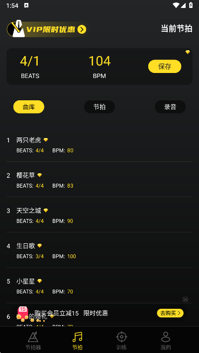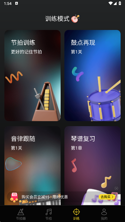 3、在训练页,您可以选择节拍训练