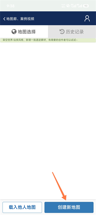 提供 “载入他人地图” 与 “创建新地图” 两种选择,点击后者即可开启专属地图创作流程。