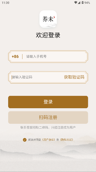 1、打开养未APP点击同意,然后进入首页。