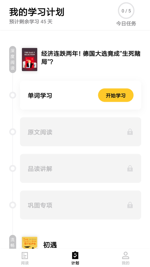 专为“上班族、大学生”等,有一定英文基础的用户设计。助力英语听力、阅读能力高效提升!为什么超过百万人共同选择流利阅读?轻松5步走,每天10分钟,让你学好英语,爱上英语。