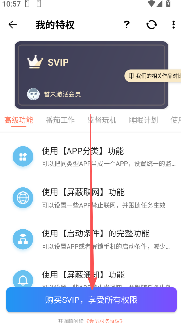 如果你想提高自律能力、远离手机、更好地掌控时间,那么一定要试试我们的监督功能!如果你想在学习工作的时候保持专注,不被手机打扰,那工作模式很适合你!如果你想早睡早起,自律生活,那睡眠模式可以帮助你!不做手机控包含了多种创新功能,如屏蔽联网、屏蔽页面、监督双开应用等,帮你远离手机诱惑。强力屏保帮你排除其他App的干扰,静心专注学习提升自我。监督玩手机,定时番茄计时器,强力锁手机,远离手机诱惑,学习早睡自律神器现在可以免费体验所有高级会员功能,快下载试试吧