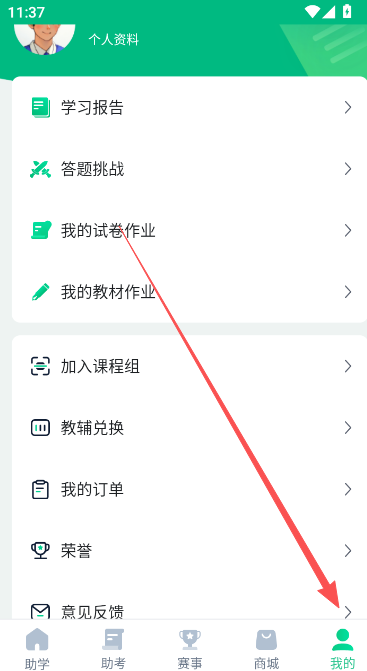 1、点击我的界面,选择下方的教辅兑换功能选项。