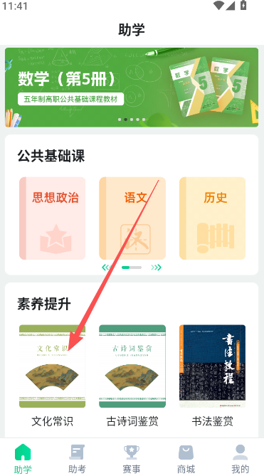 1、在助学版块,点击你要刷题的知识学习部分。