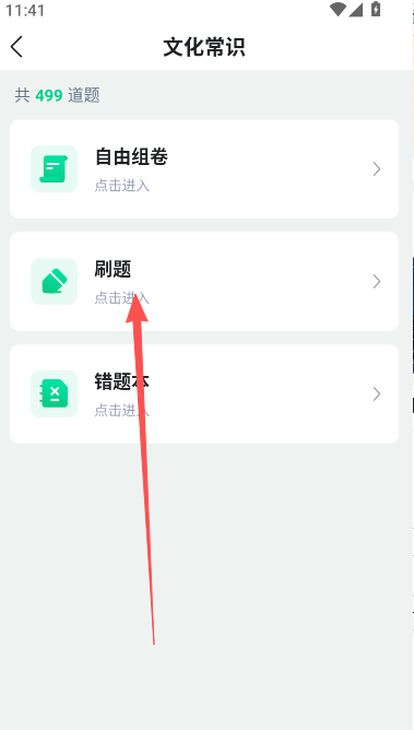 2、点击页面内的刷题功能选项部分。