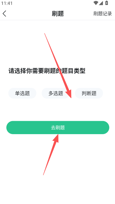 3、选择需要刷的类型,在单选、多选以及判断题做出选择。