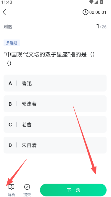 4、选定以后就可以正常的开始刷题了,为方便大家加深记忆理解,这里还有专门的解析给到大家。