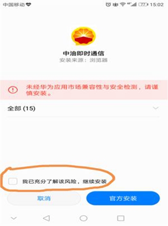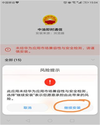 注:该提示是因为各手机厂商强制用户使用手机自带的应用市场提供的软件的原因,软件本身并没有问题,请放心使用