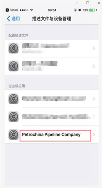 IOS系统安装完客户端以后,需要在系统设置----›通用----›设备管理,信任一下企业证书,如下图