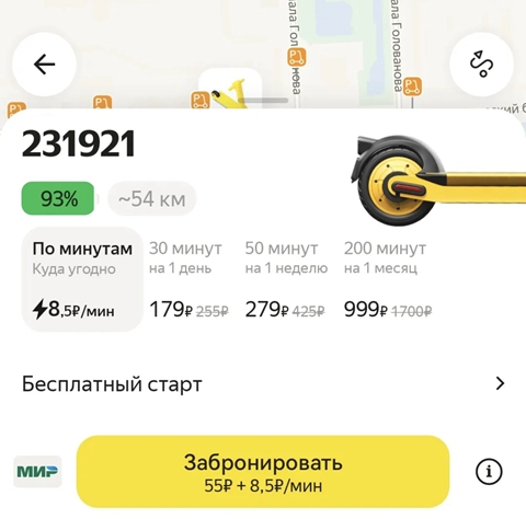 55卢布+7-9卢布/分钟(根据每辆滑板车,价格也有差异)
