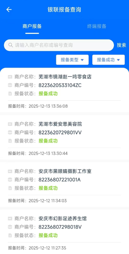 十四、选择“报备成功”与“报备失败”中查询该商户是否成功