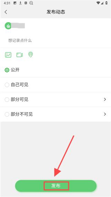 3、输入文案、图片、位置、可见人群等,点击发布按钮即可完成操作。