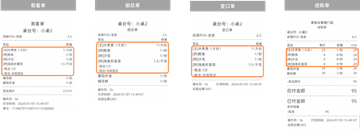 票据效果:拼菜下单后,前厅/后厨小票自动打印“主菜/拼菜”标识,后厨小票在“主菜档口”打印,打印机无需做任何额外配置。