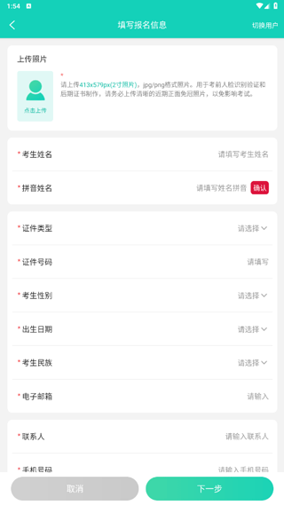 4、最后按照页面要求,输入自己的信息点击下一步即可进行报名。