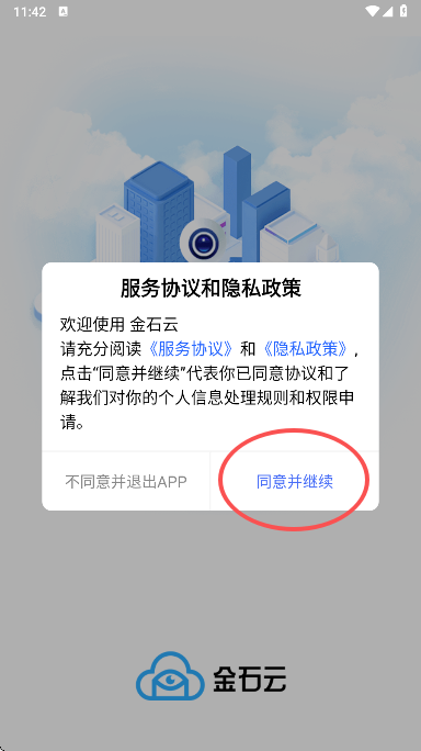 2、进入后阅读并同意金石云监控app的用户协议