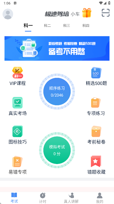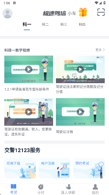 系统为您提供了科目一,科目二和科目三的现场考试或者训练的真人视频教学,为您提供更好的学习体验