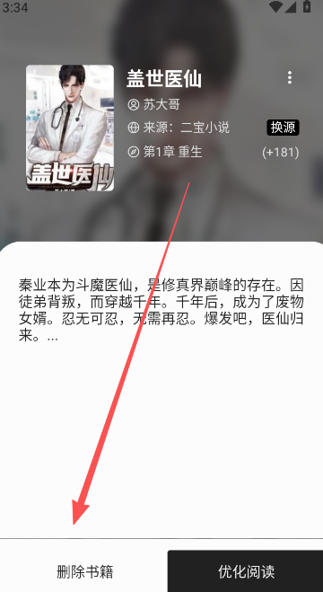 2、然后点击进入详情界面,在这里有删除书籍的选项。