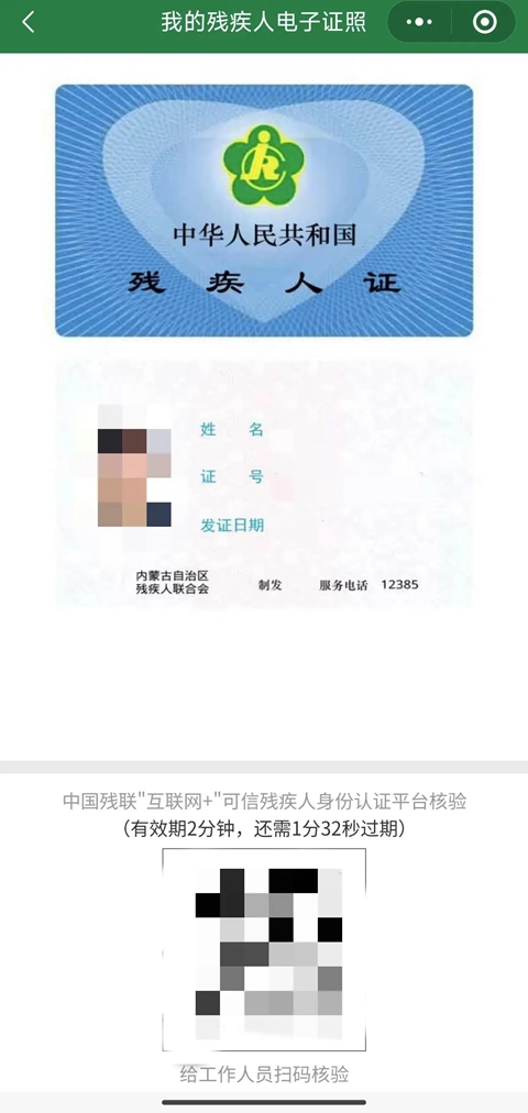 点击我的残疾人电子证照下方的二维码,出现下图: