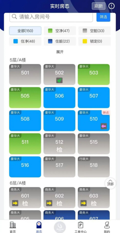 系统实时同步退房信息,客房服务人员第一时间获取最新房态,科学规划清洁顺序,解决了信息不透明导致的前台干扰、误入客房等问题,服务专业度直线上升。