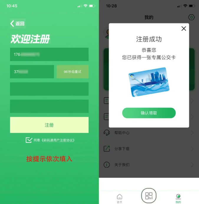 打开码码通APP,完成注册。