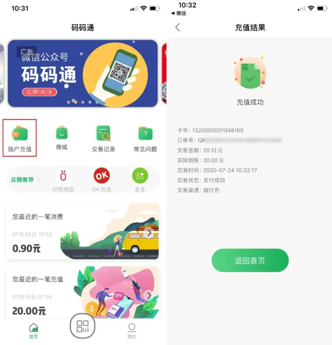 为码码通进行充值