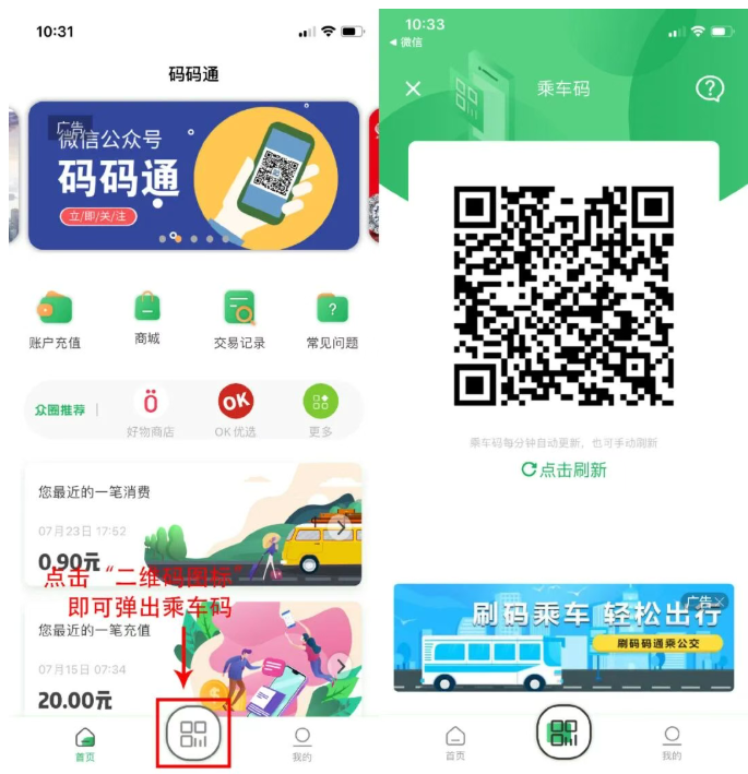 支持随手刷新乘车码,每一次乘坐公交的时候能够手动刷新乘车码直接扫码乘车