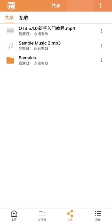 在QFile Pro中找到目标文件,长按文件选择“分享”或“打开方式”,选择安装的第三方播放器,即可通过第三方播放器播放NAS中的文件。