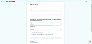 2、点击“申请 QNAP ID”,创建QNAP ID(用自己的邮箱注册,注册完成后会发送激活邮件,需要在自己邮箱内打开邮件激活)
