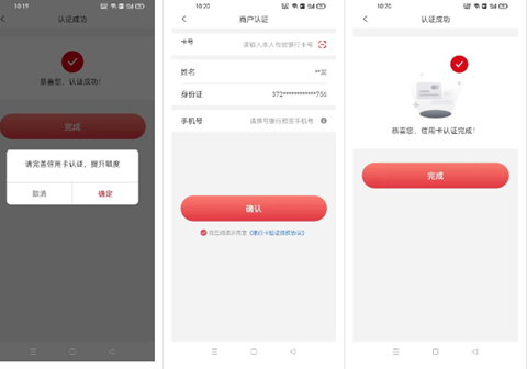 6、按照提示继续完成信用卡认证。(认证本人名下任意一张信用卡)