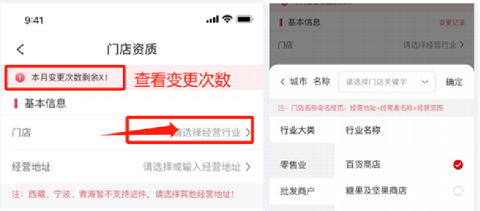 4、建议:如对当前商户不满意,选择“经营行业更新”,将对行业和商户同时填写和更新(见下图)