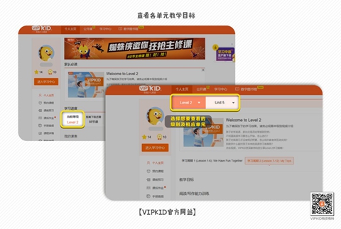 清楚知悉大到各级别、各单元,小到每节课的学习目标及课程内容,可以让您和孩子对VIPKID课程有更加系统的认知:课前了解学习目标及将要学习的重点知识,课后评估孩子对各知识点的掌握情况。