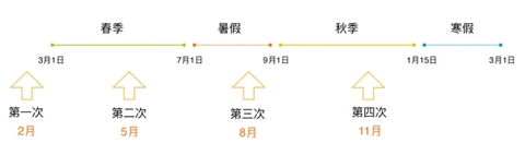 A:每年四次阶段性诊断测评,分别在:2月、5月、8月、11月