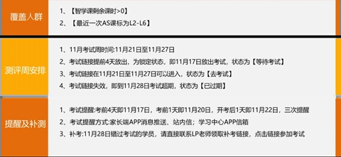 首次测评时间将在11月21日——11月27日,具体安排如下: