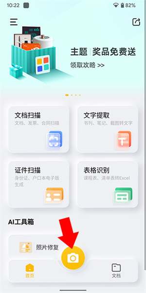 1、启动应用并进入拍照模式:打开布丁扫描App,在主界面点击底部相机图标进入拍照界面。