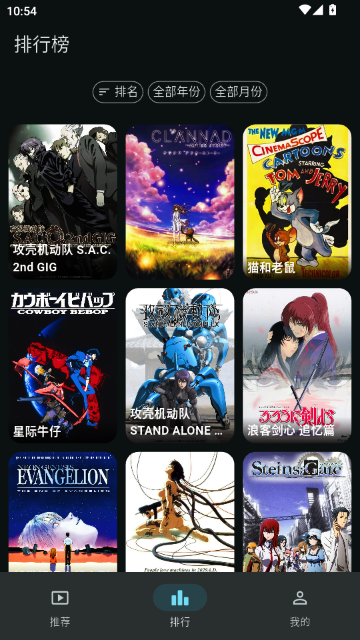5.切换至“排行”标签页,可查看各类排行榜(如综合排名、年度榜单),发现高人气或经典动漫作品,拓展观看选择。