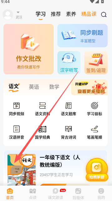 课文学习中心:集成课文原文、朗读音频、生字解析等核心资源,支持逐句点读与跟读训练。